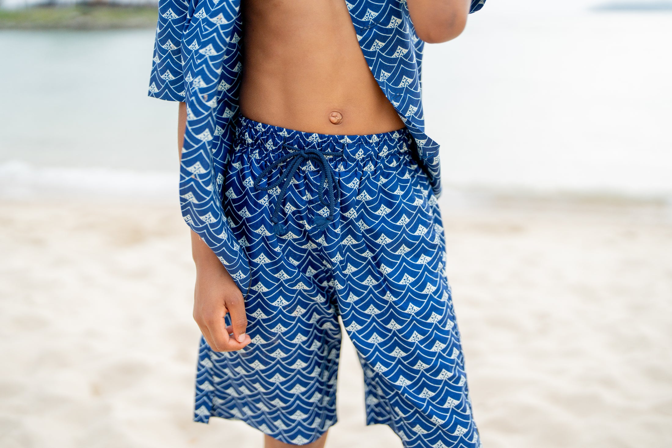 Perfectly pair these swim shorts with our matching Temi shirt in the Ocean Wave print for a coordinated beach-ready look.
