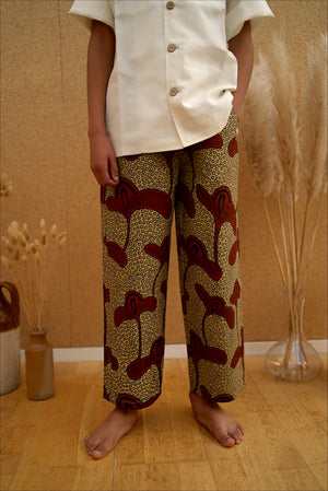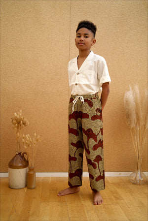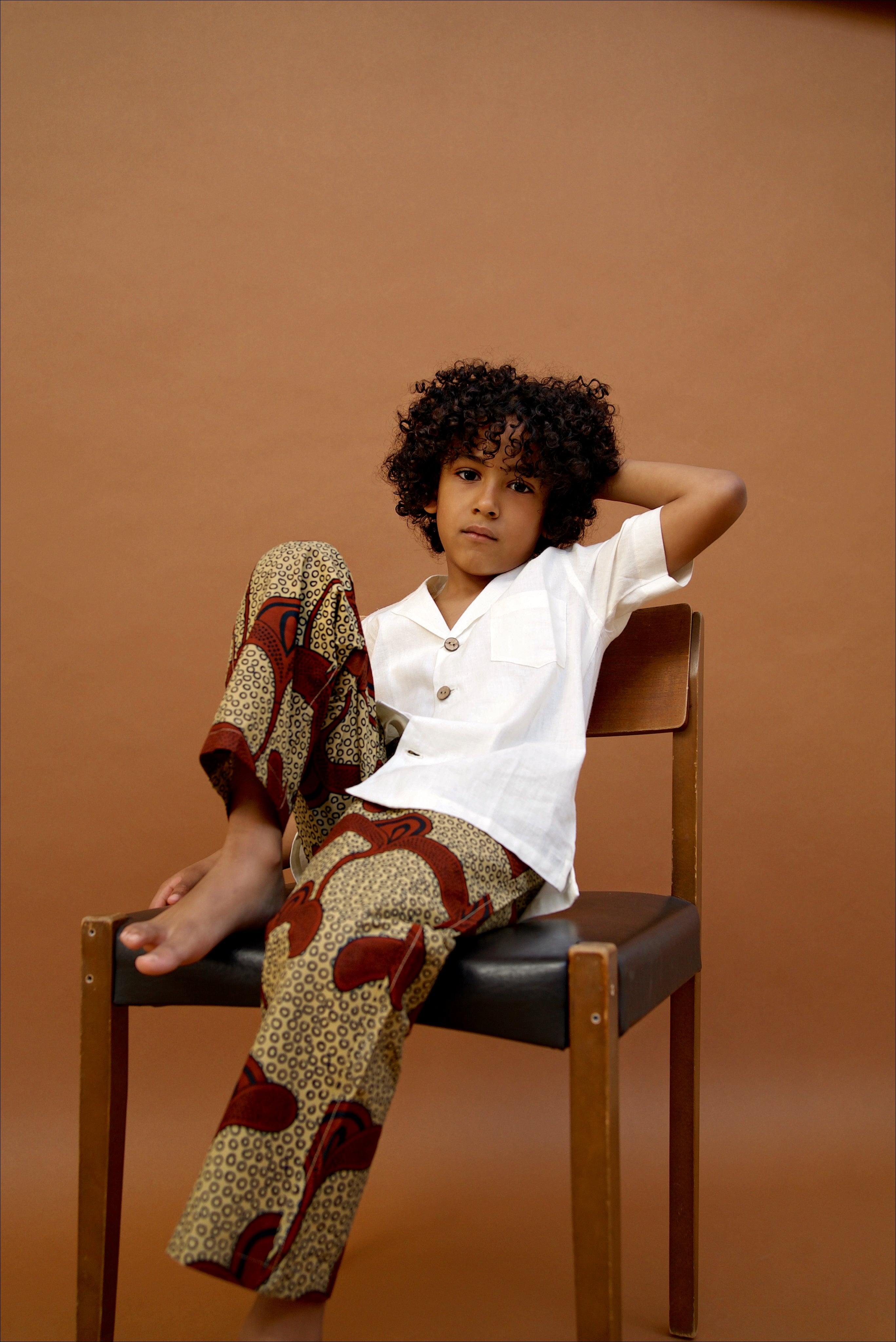 These earth tones printed trousers are gender neutral and fit easily into any wardrobe. Wear it with a T-shirt during the summer or a woollen jumper in winter, these trousers will be your little ones favourite all year round!