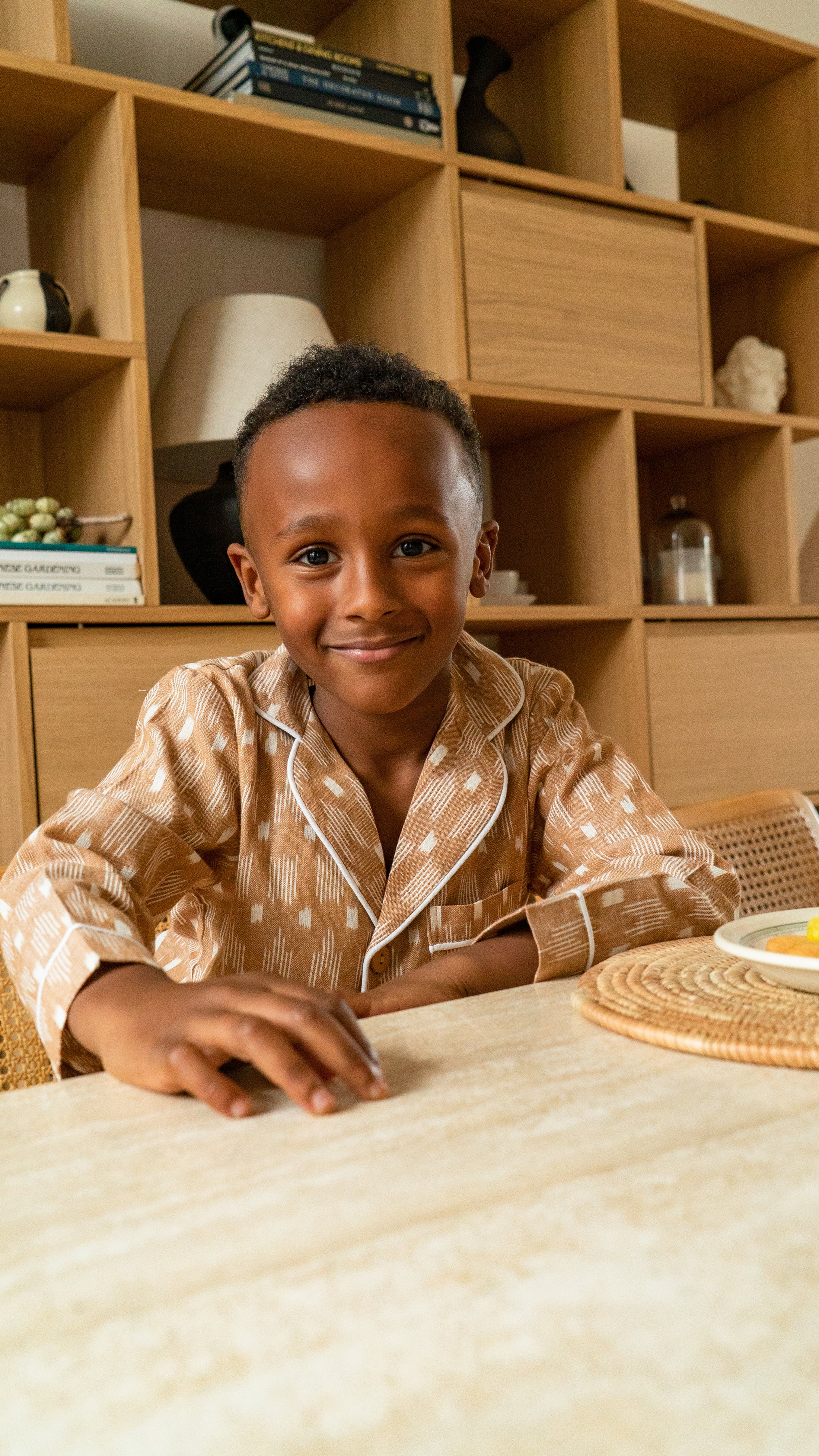 The open collar makes for a comfortable wear, and pocket on the breast is perfect for the little one to hide their nick-naks. The PJs are fastened with sustainable coconut buttons.