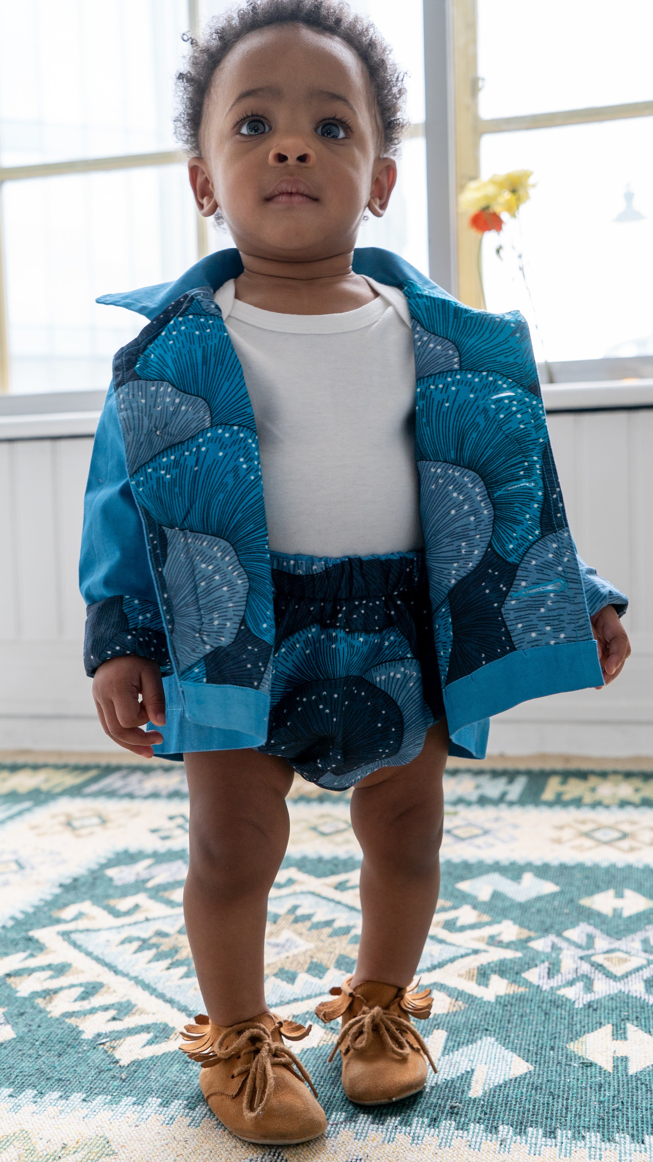 Our bloomers have been gently hand dyed in the 600 year old Kofar Mata Dye Pits by our talented artisans. They are lined with wax printed fabric that beautifully compliments the indigo hue.